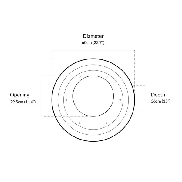 | Abmessungen Korpus (ØxT) | 60 x 36 cm |
