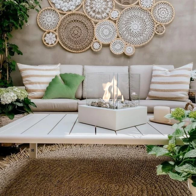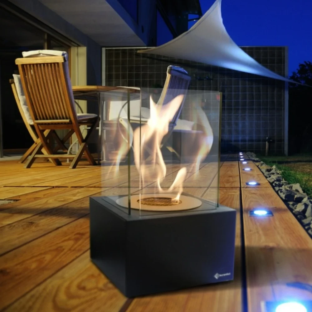 Der TÜV-geprüfte Bio-Ethanol-Kamin ist konzipiert für den Einsatz im Innenbereich, kann jedoch auch in vor Witterung geschützten Außenbereichen zum Einsatz gebracht werden.