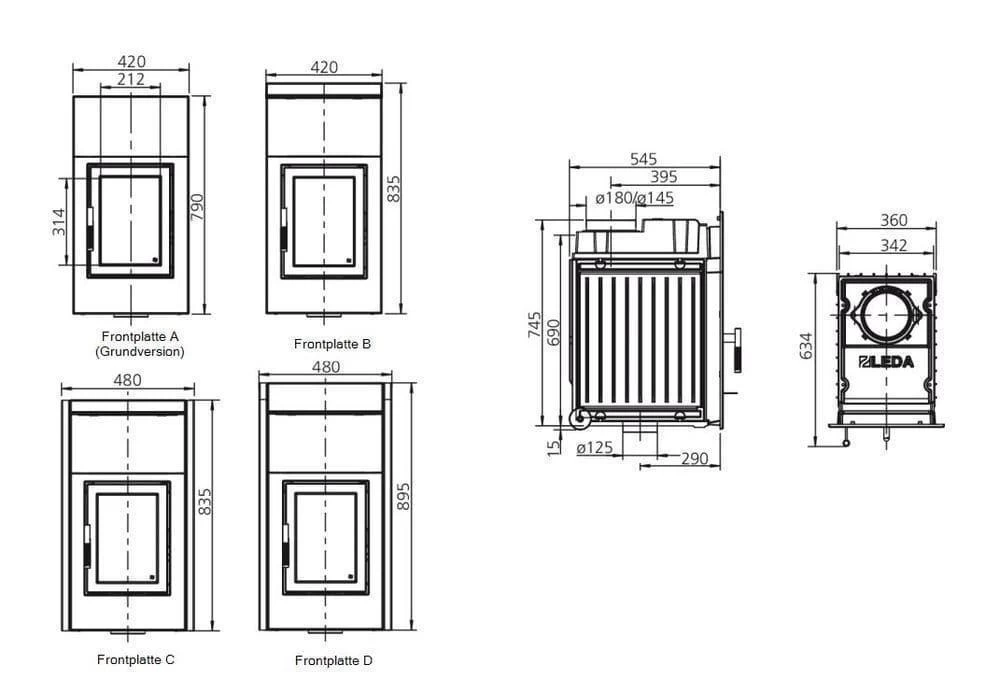 Der Kachelofeneinsatz Diamant H10 ist mit 2 verschiedenen Nennwärmeleistungsstufen und Rauchrohrstutzendurchmessern sowie Anbauleisten für 4 verschiedene Frontplattengrößen zur Auswahl bei Kaminprofi24 erhältlich.