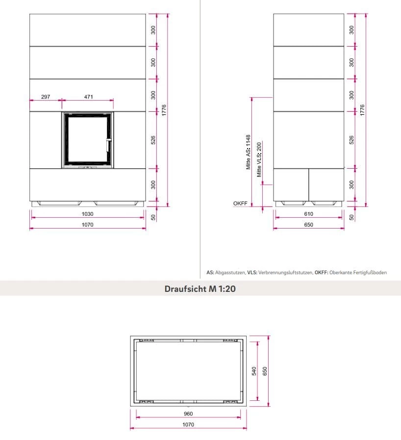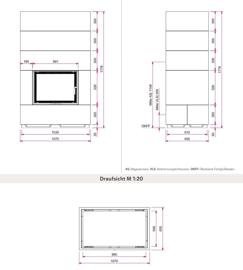 Datenblatt mit Kamineinsatz mit 67 cm Türbreite