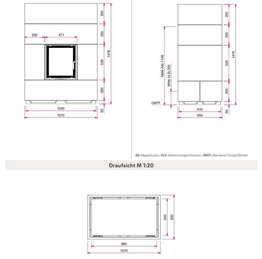 Datenblatt mit Kamineinsatz mit 67 cm Türbreite
