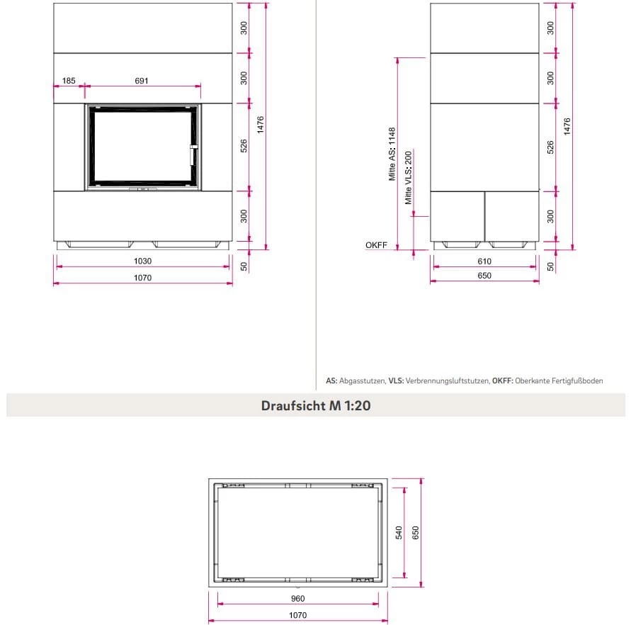 | Breite Feuerraumtür (mit Kamineinsatz Lina 4551/5551/6751s/h) | 45 cm / 55 cm / 67 cm |