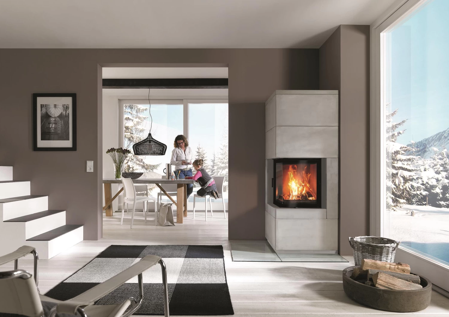 Puristischer Beton und natürlicher, geschliffener Stein für eine individuelle Optik der Anlagen – jeder Kaminbausatz ein Unikat