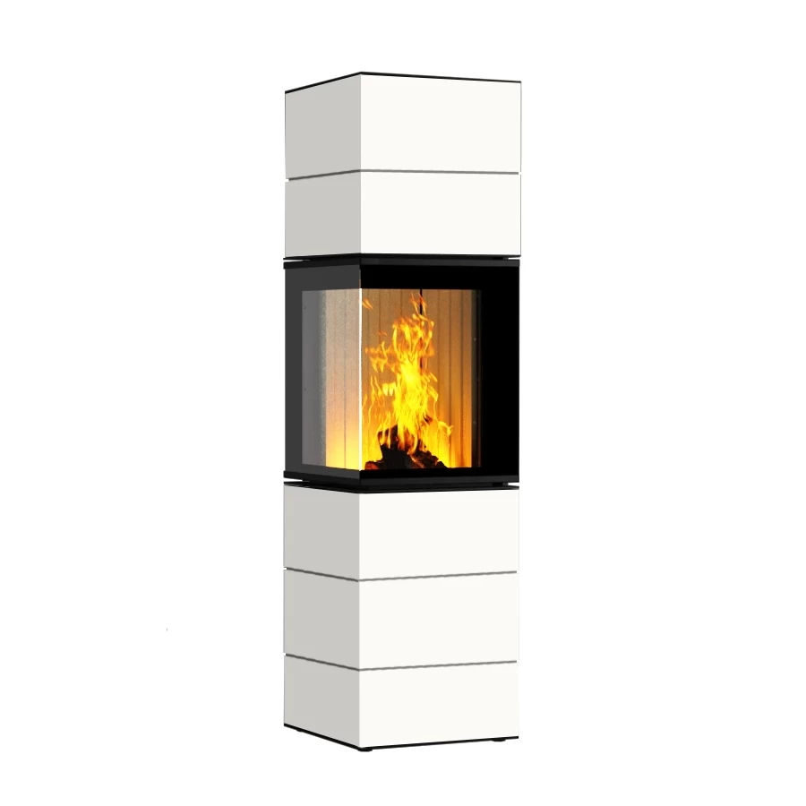 Die Kaminbausätze des Herstellers neocube stehen für exzellente Feuerungstechnik sowie ein Höchstmaß an Qualität und Individualität. Dank den wählbaren Oberflächen aus 1,2 cm starker Neolith Sinterkeramik gehören Öfen mit unschönen Rissen in Putzoberflächen der Vergangenheit an. Das äußerst widerstandsfähige Material ist UV-beständig, leicht zu reinigen und hat darüber hinaus eine leichte Speicherwirkung und sorgt so auch nach dem Abbrand für eine angenehme Strahlungswärme. Mit dem Modell S20 black & white mit seiner Oberfläche in wahlweise strahlendem Weiß oder elegantem Schwarz und den aufwendig eingefräßten Rillen, erhält Ihre Feuerstelle eine topaktuelle Optik mit höchst exklusiver Anmutung. Das Designkonzept überzeugt mit ultraklaren Linien für einen modernen, zeitlos eleganten Eindruck. Es entsteht ein Ort voller Wärme, der pure Behaglichkeit verströmt und zum Verweilen einlädt. Bei dem Kaminbausatz S20 black & white handelt es sich um einen Bausatz für einen Eckkamin mit 2-seitiger Panoramaverglasung für einen spektakulären Blick auf das faszinierende Flammenspiel in seinem großzügigen Feuerraum. Der Aufbau der neocube Kaminbausätze erfolgt dank der wenigen, perfekt aufeinander abgestimmten Bauteile in wenigen Arbeitsschritten.
