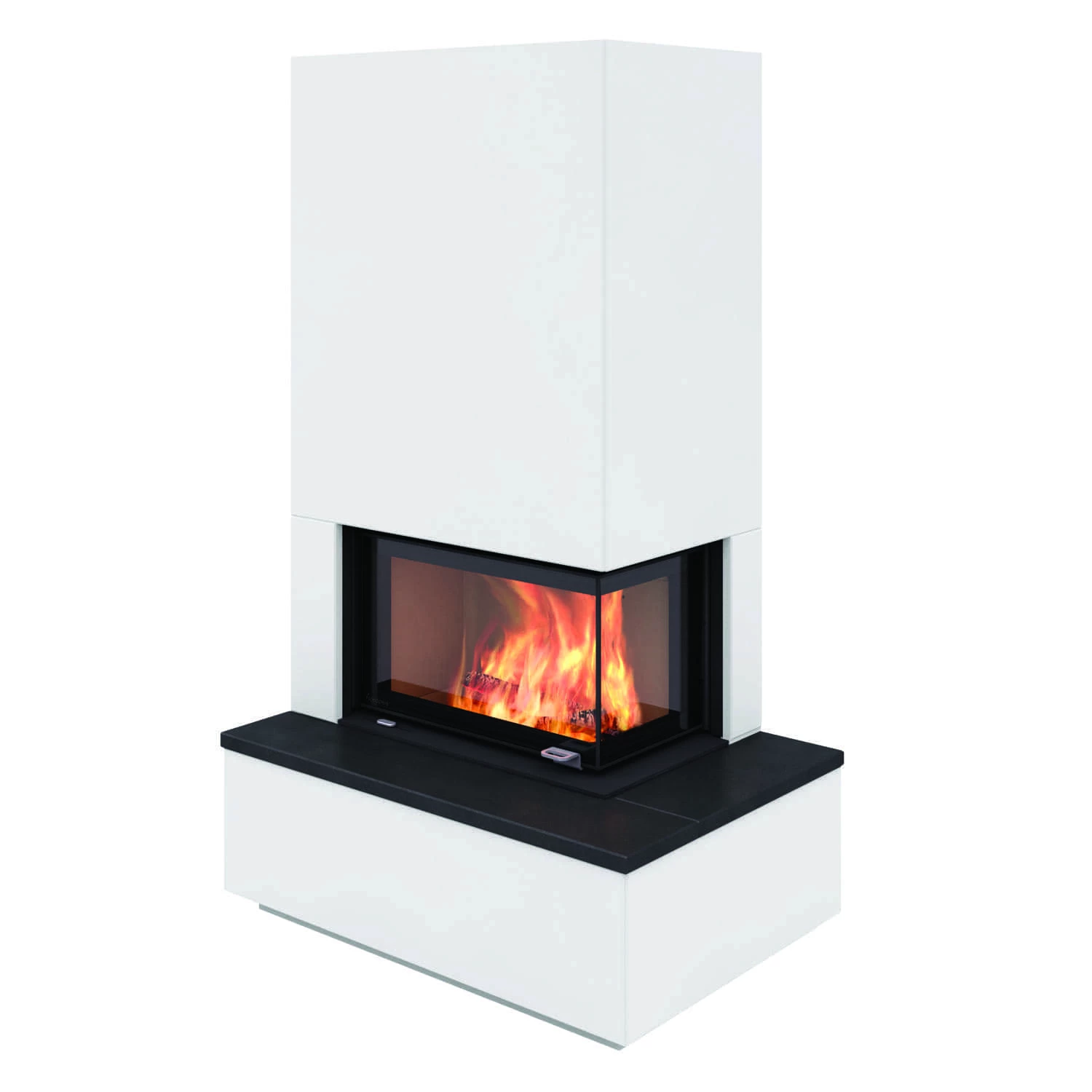 Der Kaminbausatz Monaco A ist mit Eckscheibe links oder rechts, mit niedrigem oder hohen Sockel, mit oder ohne Bank mit Auflage sowie als Basismodell oder mit Powerstone Wärmespeicher für eine verlängerte Wärmedauer zur Auswahl bei Kaminprofi24.de erhältlich.