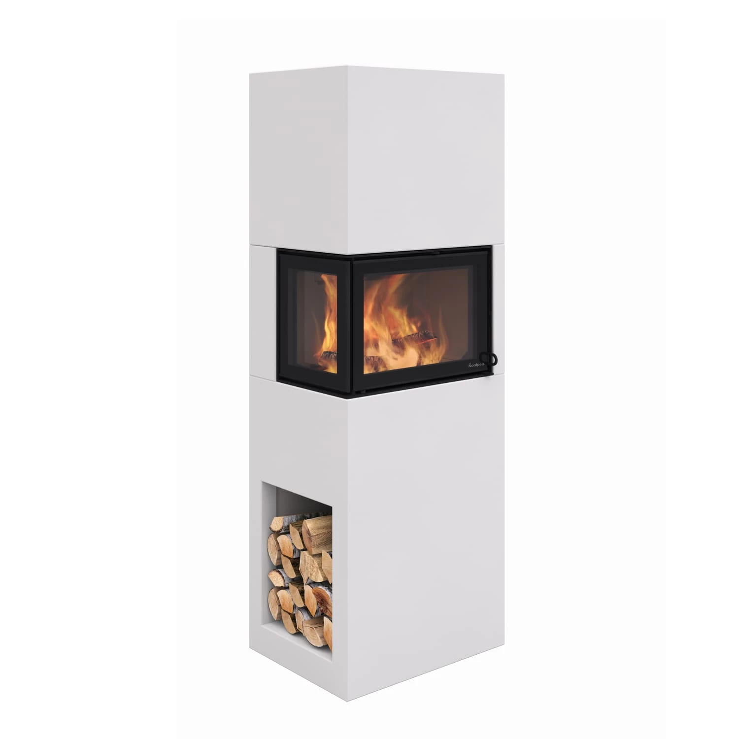 Die Kaminbausätze des norwegischen Herstellers Nordpeis überzeugen durch moderne Designs im angesagten Skandinavischen Stil, den Einsatz hochwertiger Materialien und große Produktvielfalt sowie mit kinderleichtem Aufbau. Der Korpus des Kaminbausatzes Pisa wird gefertigt aus Spezialbeton, dem sogenannten Shape Stone Light, dessen hohe Haltbarkeit und Festigkeit durch eine, in den belasteten Bereichen sogar verstärkte, Faserarmierung erlangt wird. Das Material hat eine leichte Speicherwirkung und sorgt so auch nach dem Abbrand für eine angenehme Strahlungswärme, dank welcher ein nachhaltig wohlig-warmes Raumklima geschaffen wird. Bei dem Modell Pisa handelt es sich um einen Kaminbausatz mit zahlreichen Möglichkeiten der Konfiguration. So lässt sich das Gerät sowohl an die persönlichen Vorstellungen als auch an die individuellen Gegebenheiten des Aufstellraumes hervorragend anpassen, denn der Kaminbausatz kann gleichermaßen gut an eine gerade Wand oder in einer Ecke platziert werden und mit einem optisch perfekt harmonierenden Regal erweitert werden. Besonders erwähnenswert ist darüber hinaus die großzügige 2-seitige Doppel-Verglasung, die den Kamin zu einem besonderen Blickfang Ihrer ganz persönlichen Raumgestaltung werden lässt sowie das praktische Holzfach auf der Seite des verbauten Kamineinsatzes, dank dem Sie eine kleine Menge Brennholz stets griffbereit und gleichzeitig stilsicher aufbewahrt wissen. Bei der Gestaltung des Kamines lag der Fokus auf einer klaren Formensprache sowie auf der spektakulären Sicht auf das herrlich prasselnde Kaminfeuer in seinem Inneren, erlangt durch die großzügige Eckscheibe. Der graue Spezialbeton kann darüber hinaus für eine individuelle Gestaltung mit einer Ofenfarbe in Ihrem Wunschfarbton angestrichen werden. Der Anschluss des in diesem Eckkamin verbauten Kamineinsatz Nordpeis N20 kann ganz flexibel oben, seitlich oder hinten vorgenommen werden. Der Kaminbausatz ist mit Einsatz und Holzfach wahlweise auf der linken oder rechten Seite, mit oder ohne seitlichem Holzregal zur Aufbewahrung einer größeren Vorratsmenge Brennholz sowie als Basismodell oder mit Powerstone Wärmespeicher für eine verlängerte Wärmedauer (nur bei rückseitigem Rauchrohranschluss möglich!) bei Kaminprofi24 erhältlich.