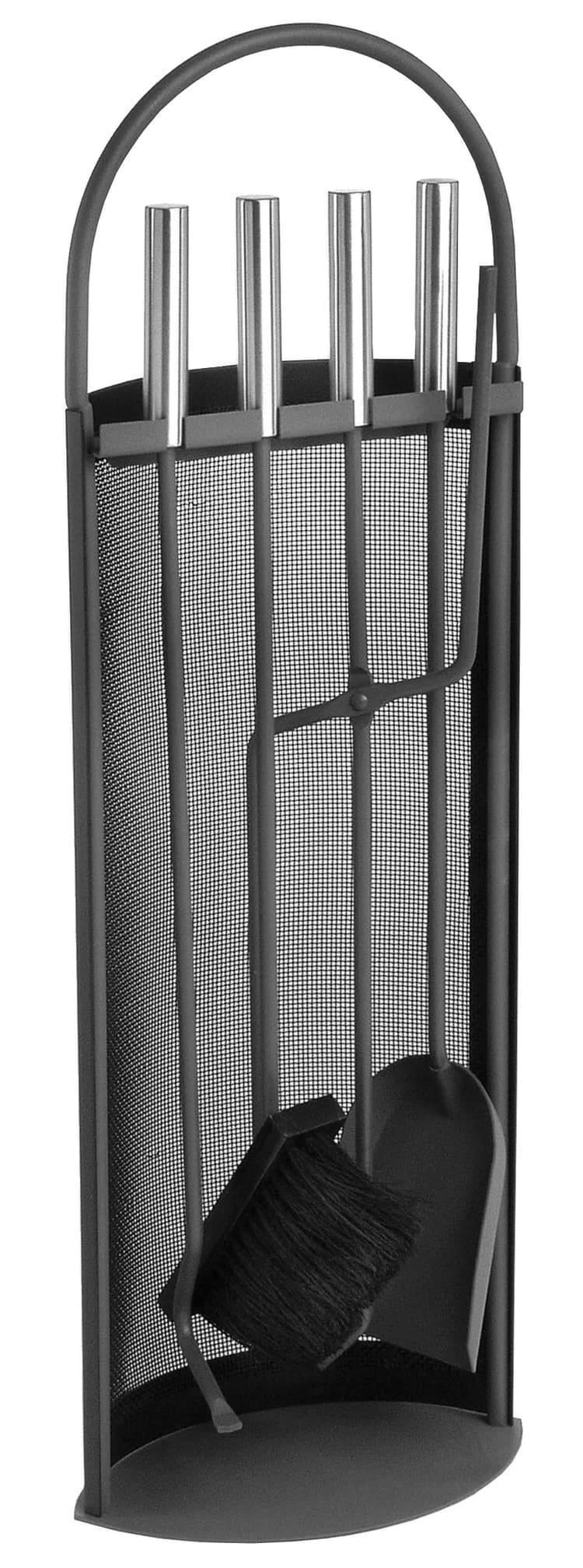 Das 5-teilige Kaminbesteck überzeugt mit moderner Optik und der gewohnt guten Qualität der Marke LIENBACHER. Die Metalloberfläche ist mit einer strapazierfähigen und hitzebständigen Beschichtung versehen und die Griffe aus Edelstahl lassen Besen, Schaufel, Schürhaken und Zange hervorragend in der Hand liegen. Die Ausformung im oberen Bereich kann als Henkel benutzt werden. So lässt sich Ihr Kaminbesteck mit einer Hand tragen und mühelos repositionieren.