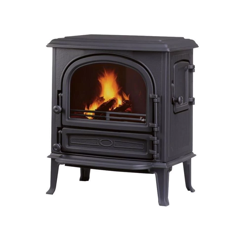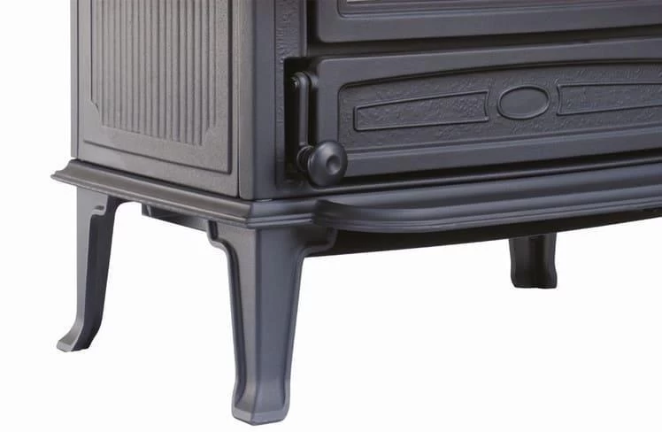 Der Gussofen ANTIGUA des deutschen Traditionsunternehmens LEDA mit seiner besonderen Formsprache inspiriert vom Art-déco-Stil bietet Wärmegenuss mit ursprünglichem Charakter in Verbindung mit aktuellster Feuerungstechnik. Seine besondere Optik wird ihm durch Details wie den gebogenen Standfüßen, den dezenten Verzierungen und feinen Konturen sowie der nach obenhin abgerundeten Sichtscheibe verliehen und macht diesen Schwedenofen zu einem Blickfang in jedem Ambiente von klassisch bis modern. Die Brennkammer des ANTIGUA kann entweder von vorne oder durch eine zusätzliche seitliche Tür sauber und sicher befüllt werden.