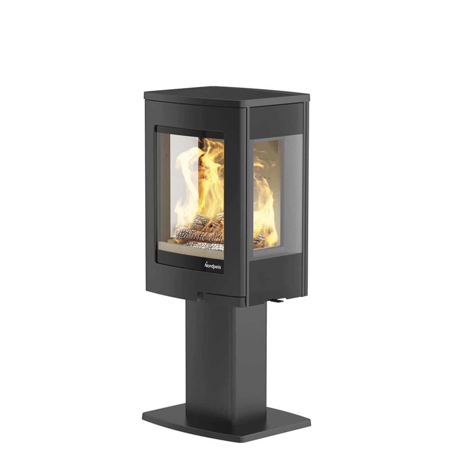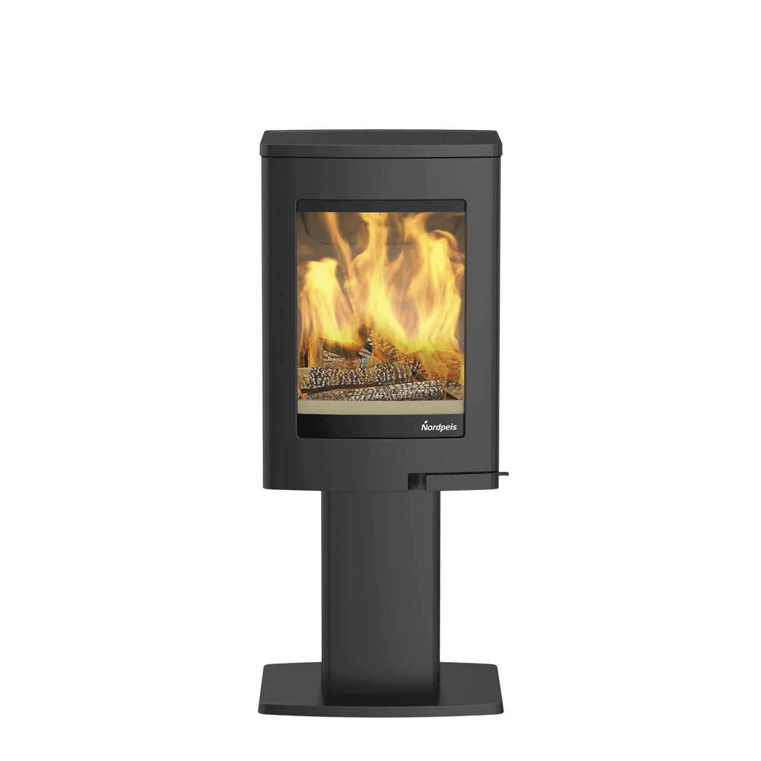 Die Kaminöfen des norwegischen Herstellers Nordpeis überzeugen durch moderne Designs im angesagten Skandinavischen Stil und den Einsatz hochwertiger Materialien. Der Kaminofen Uno 1 lässt sich dank seiner schlanken Form und seiner kompakten Abmaße besonders gut in kleine bis mittelgroße Räume integrieren. Der Korpus des Kamines wird gefertigt aus hochwertigem, in elegantem Schwarz lackiertem Stahl. Extravagantes Highlight des Uno 1 sind die seitlichen Sichtscheiben, die den Blick des Betrachters in den Feuerraum auch aus ungewohnten Blickwinkeln freigeben. So wird auf besonders raffinierte Weise eine wunderbar wohnliche Atmosphäre geschaffen. Der schlanke Sockel ergänzt gekonnt das stilvolle Design und unterstreicht das charakteristische Erscheinungsbild des Uno 1.