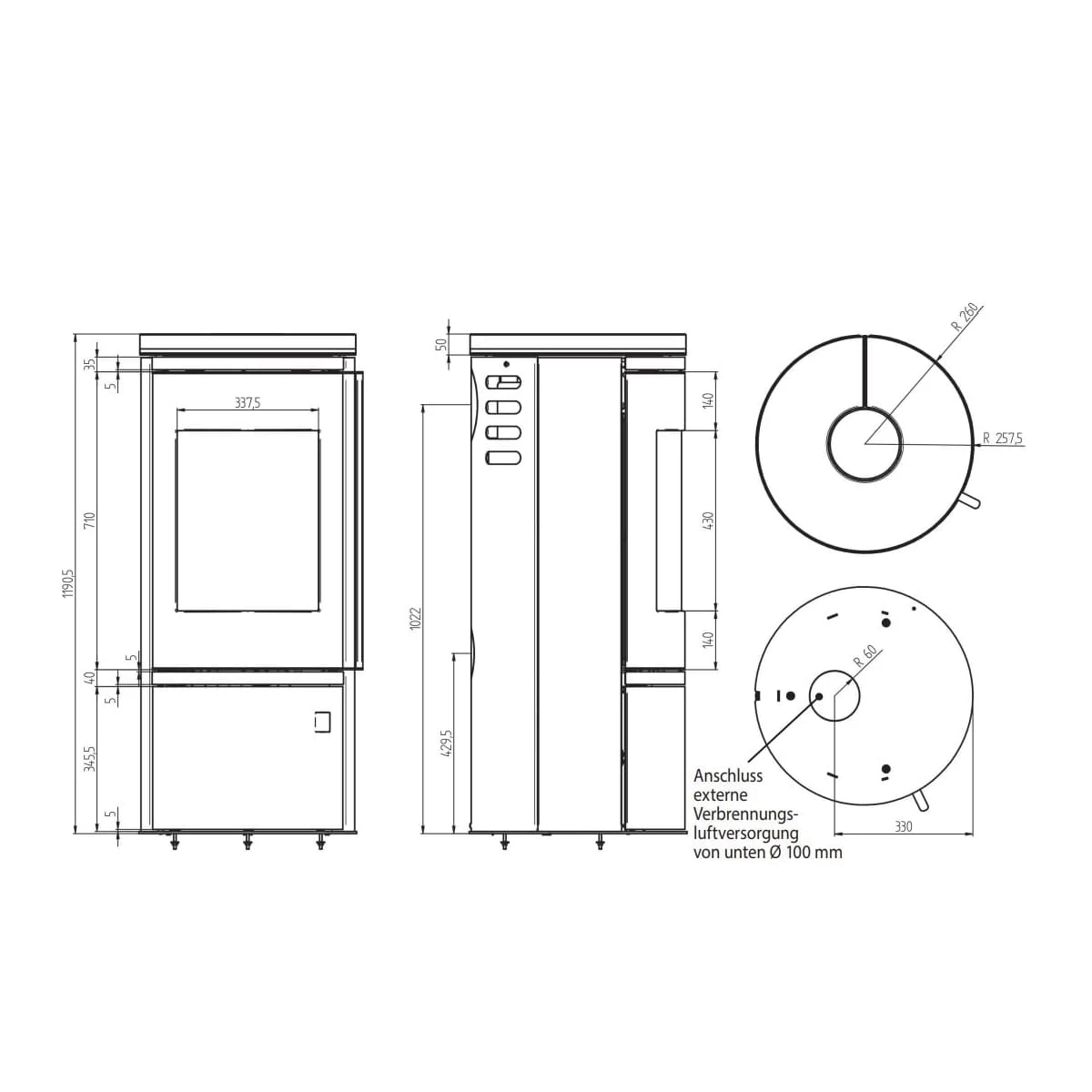 Sichtbereich Feuerraumtür (HxB) |