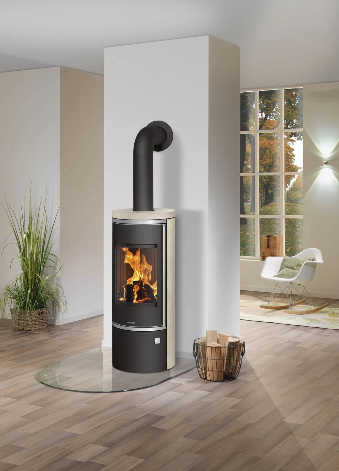 Die Kaminöfen der Serie Corso des traditionsreichen deutschen Familienunternehmens ORANIER sind mit ihrem geradlinigen Design und der attraktiven, kreisrunden Grundform besonders vielseitig einsetzbar, da sie sich durch die geschmeidige Formgebung des schwarz lackierten Korpus mit den unterschiedlichen zur Verfügung stehenden Konfigurationsmöglichkeiten der Seitenverkleidung und der Top-Platte hervorragend an den Charakter und das Interieur eines jeden Raumes anpassen lassen. Bei der Auswahl der Verkleidung in einer der zur Verfügung stehenden Naturstein-Varianten verfügt der Corso 2.0 über eine dezente Speicherleistung, denn diese Materialien speichern die Wärme des Feuers und geben sie langsam und gleichmäßig an die Umgebung ab. So wird auch über einen längeren Zeitraum ein angenehm-wohliges Raumklima geschaffen. Mit dem integrierten, dezent hinter einer Tür im unteren Bereich verborgenen Holzfach ist Ihr Holzvorrat stets stilvoll und jederzeit griffbereit aufbewahrt.