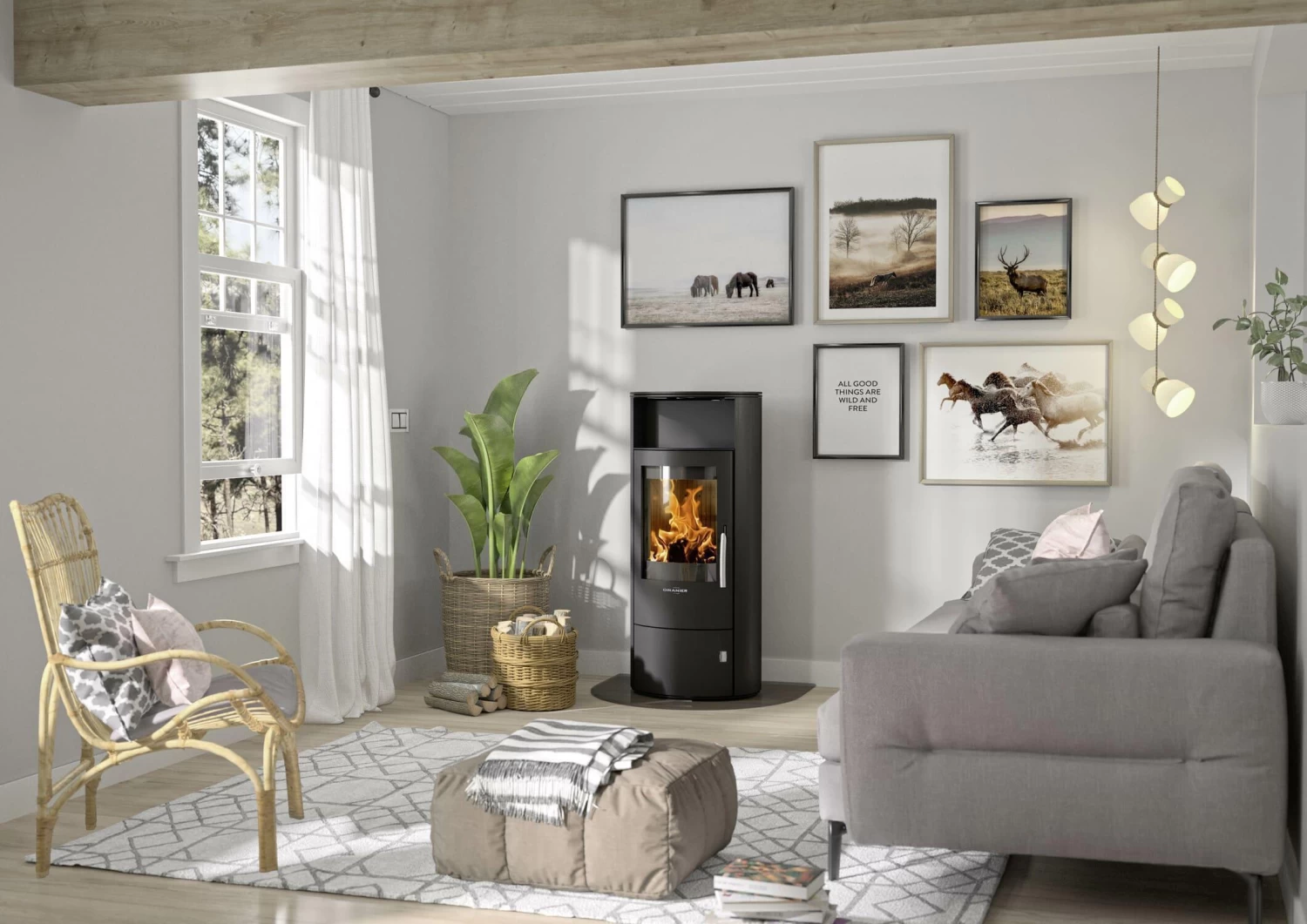 Die Kaminöfen der Serie Polar des traditionsreichen deutschen Familienunternehmens ORANIER sind mit ihrem harmonischen Design und der eleganten ovalen Grundform besonders vielseitig einsetzbar. Die gekonnte Kombination von schlichter, schnörkelloser Form des gussgrau lackierten Korpus und den vielen zur Verfügung stehenden Konfigurationsmöglichkeiten der Seitenverkleidung und der Top-Platte ermöglichen eine hervorragende Anpassung an den individuellen Charakter und das Interieur eines jeden Raumes. Mit seiner cleveren Formgebung, die ein Positionieren in eine Raumecke bei gleichzeitiger frontaler Feuersicht ermöglicht und den praktischen Features wie dem integrierten Warmhaltefach im oberen Bereich sowie dem Holzfach, dank welchem Ihr Holzvorrat stets griffbereit aufbewahrt ist, wird der Polar Eck zu einem wunderbaren, optisch ansprechenden und gleichermaßen funktionellen Bestandteil Ihrer Raumgestaltung. Weitere Highlights sind die Automatikregelung, mit welcher dank einer Voreinstellung die Verbrennungsluft optimal dosiert und automatisch reguliert wird sowie seine Vielseitigkeit hinsichtlich der Brennstoffe, denn der Schwedenofen ist zugelassen für Scheitholz sowie für Holz- und Braunkohlebriketts.