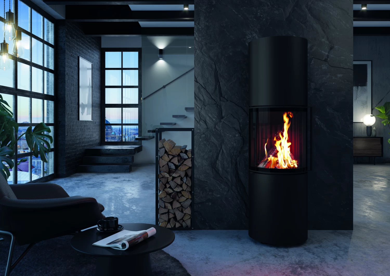Die Kaminöfen der Black Edition des deutschen Premiumherstellers Spartherm begeistern mit markantem und stilvollen Erscheinungsbild, konzipiert für anspruchsvolle Kunden mit Blick für das Besondere und einer intensiven Liebe zu puristischen Formen und ausgeprägter Ästhetik. Sämtliche Bauteile sind schwarz lackiert, was den Kaminen einen eindrucksvollen Auftritt sichert. Die Kaminöfen der Serie Passo sind mit ihrer zugleich schlichten und außergewöhnlichen Form ein garantierter Blickfang in Ihrem Wohnzimmer. Das schnörkellose, kreisrunde Design des Passo wird nur durch die klappbare Glastür mit großzügiger Panoramascheibe unterbrochen. Diese eröffnet dem Betrachter eine fantastische 180 Grad Einsicht in das prasselnde Kaminfeuer des Schwedenofens. Mit einer Gesamthöhe von ca. 1,64 m und einem Durchmesser von ca. 48 cm fügt sich der Passo L Black Edition ausgezeichnet auch in kleinere Räume ein.