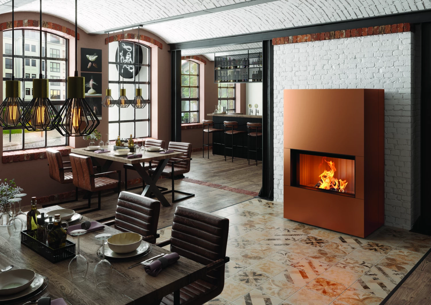 Der raumluftabhängige Kaminofen ist in zahlreichen eleganten Farben oder als Ausführung in Rohstahl jeweils als wandbündiges Modell oder als freistehendes Modell mit in Korpusfarbe lackierter Rückwand bei Kaminprofi24 erhältlich.