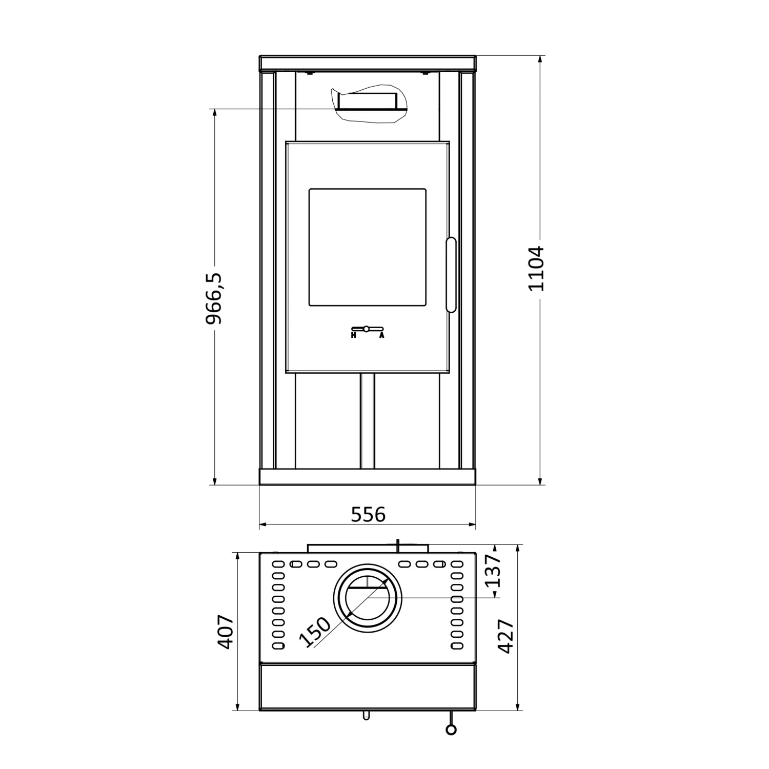 | Höhe bis Stutzen |