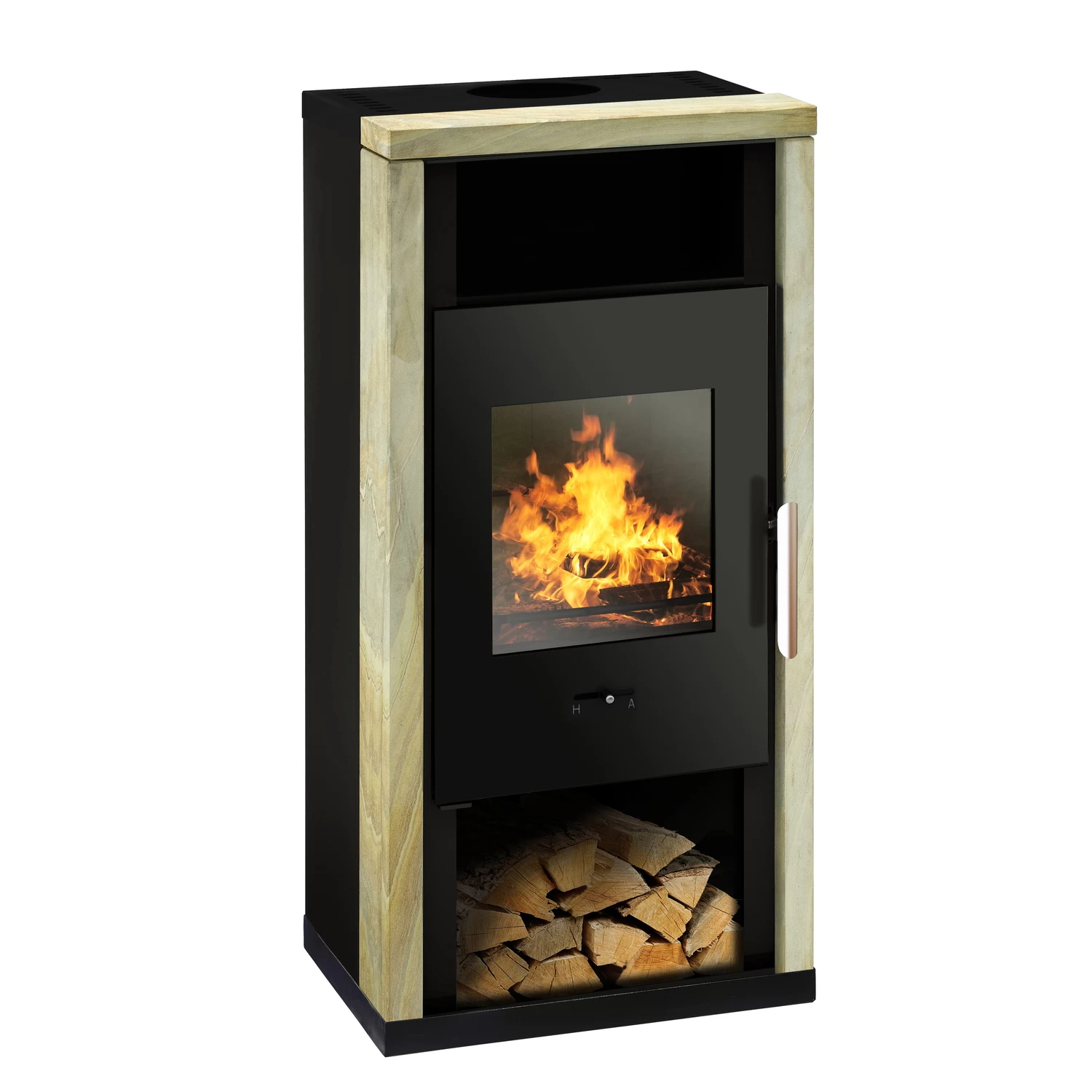 Die Applikationen aus wahlweise Speck- oder Sandstein rahmen das Kaminfeuer optisch ein und unterstreichen zusätzlich die attraktive Anmutung des Kaminofens. Das integrierte Warmhaltefach im oberen Bereich sowie das Holzfach zur praktischen Aufbewahrung Ihres Feuerholznachschubes unten machen den Yuna zu einem wunderbaren, optisch ansprechenden und gleichermaßen funktionellen Bestandteil Ihrer Raumgestaltung. Ein weiteres Highlight ist die Vielseitigkeit hinsichtlich der Brennstoffe, denn der Schwedenofen ist zugelassen für Scheitholz sowie für Holz- und Braunkohlebriketts. Auf der Rückseite des Ofens befindet sich ein Brennstoffwähler zur automatischen Anpassung des Abbrandes an die Eigenschaften des zum Einsatz kommenden Brennstoffes.