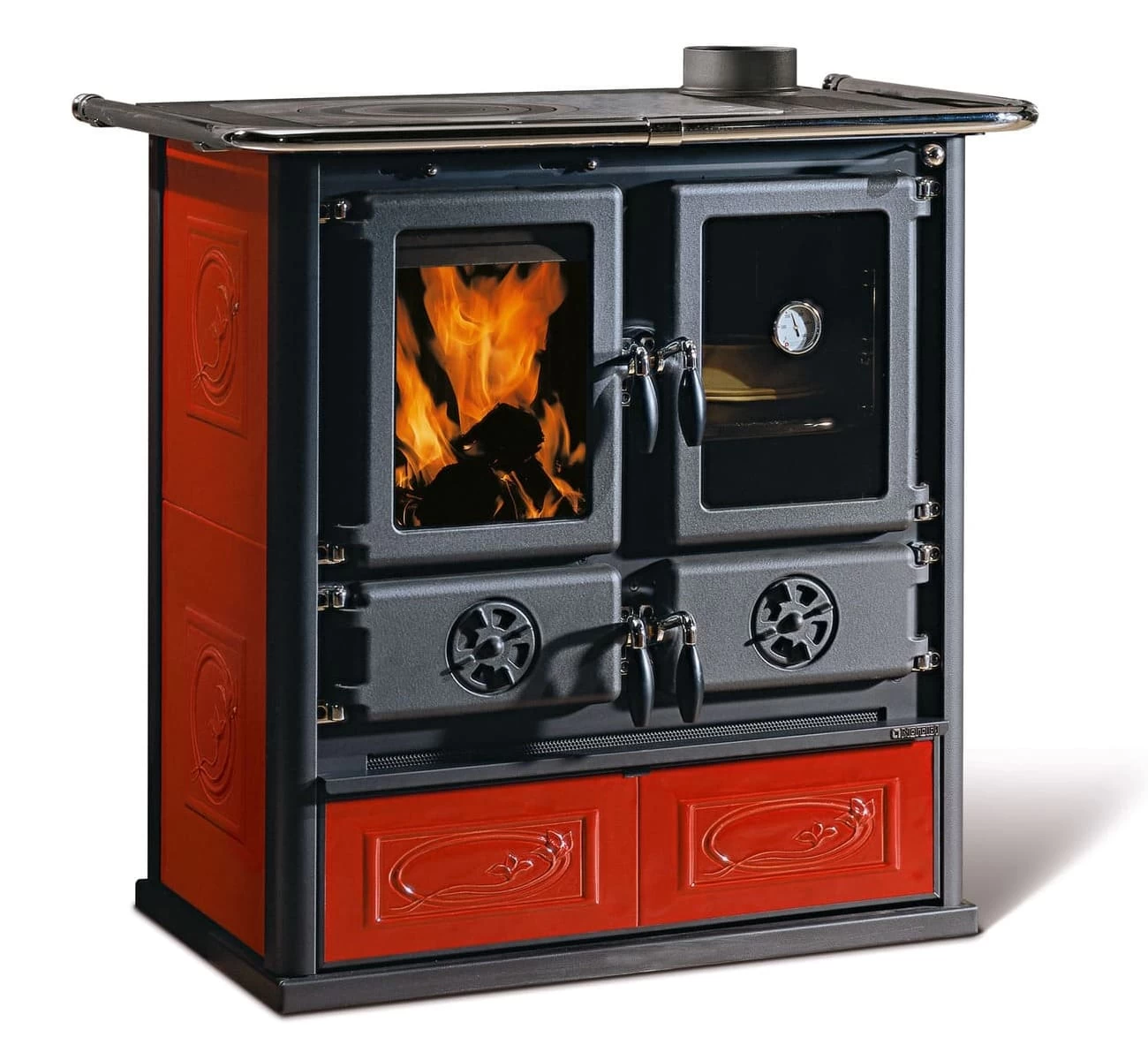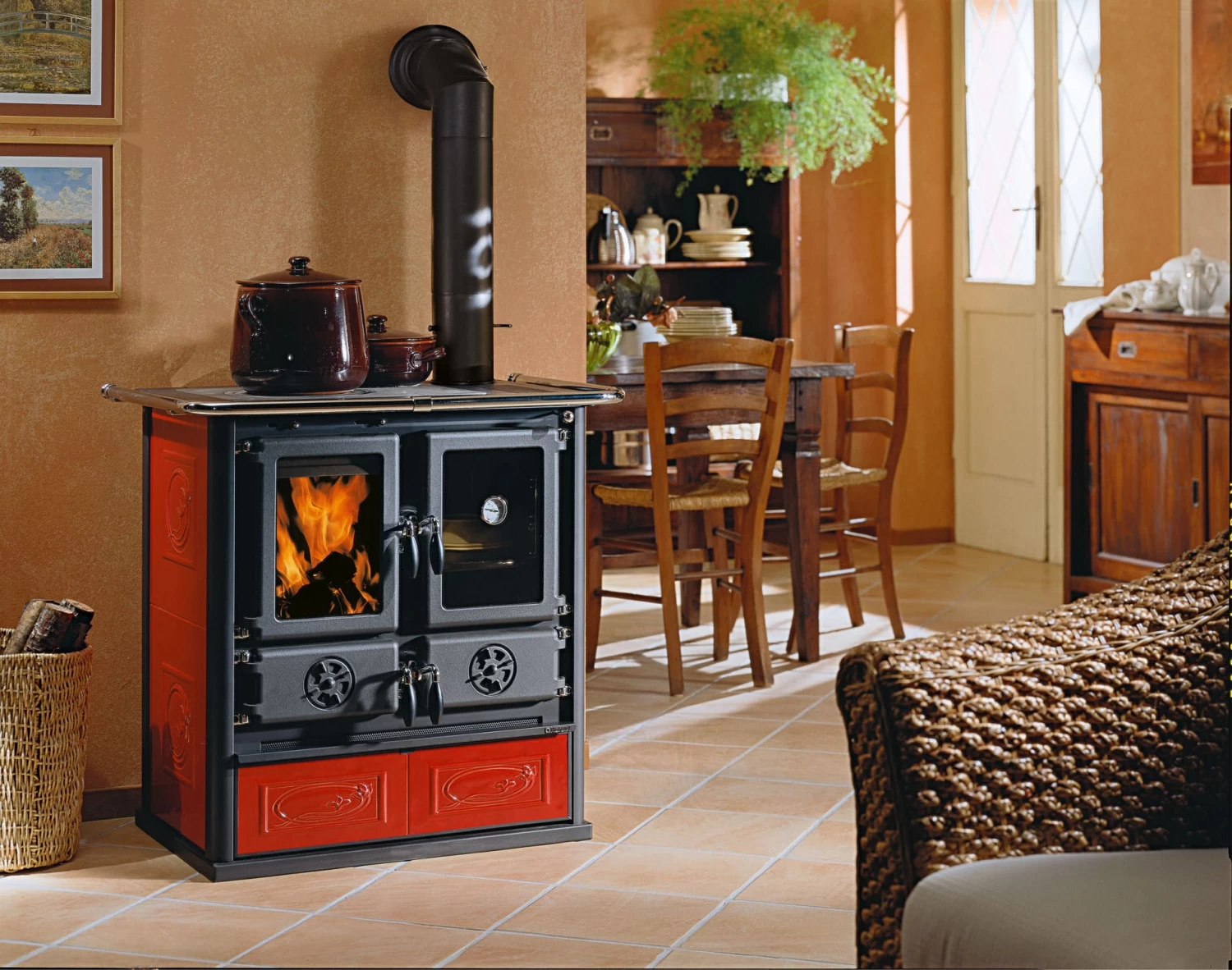 Der Küchenofen Rosetta BII des italienischen Traditionsunternehmens LA NORDICA bietet mit seiner nostalgisch anmutenden, aber doch zeitgemäßen Optik höchstes Kochvergnügen und gleichzeitig das typische, herrliche, wohlige Wärmeerlebnis, welches ein Holzofen zu vermitteln vermag. In Verbindung mit der modernen Feuerungstechnik und dem speziell entwickelten Post Combustion System, welches dank eines Zweit-/ Drittluftsystems eine Nachverbrennung ermöglicht, was die schädlichen Emissionen signifikant reduziert, erhalten Sie mit dem Rosetta BII ein stilvolles und effizientes Koch- und Heizgerät. Der gesamte Korpus des Rosetta BII ist, einschließlich seines Feuerraumes, aus langlebigem und massivem Guss gefertigt. Blickfang ist die Seitenverkleidung aus wahlweise wunderschöner Majolika, der kunstvollen, farbig bemalten, glasierten italienischen Keramik oder zeitlos anmutendem Naturstein. Besonders praktisch ist die Kochplatte mit 4 herausnehmbaren Gussringen und das in die Backofentür integrierte Thermometer. Eine große Schublade im unteren Bereich des Küchenofens kann den Holznachschub aufnehmen. Liebevolle Details wie die charakteristischen Türgriffe und die umlaufende Reling runden das Bild und kreieren den besonderen Charme des Küchenherd Rosetta BII.