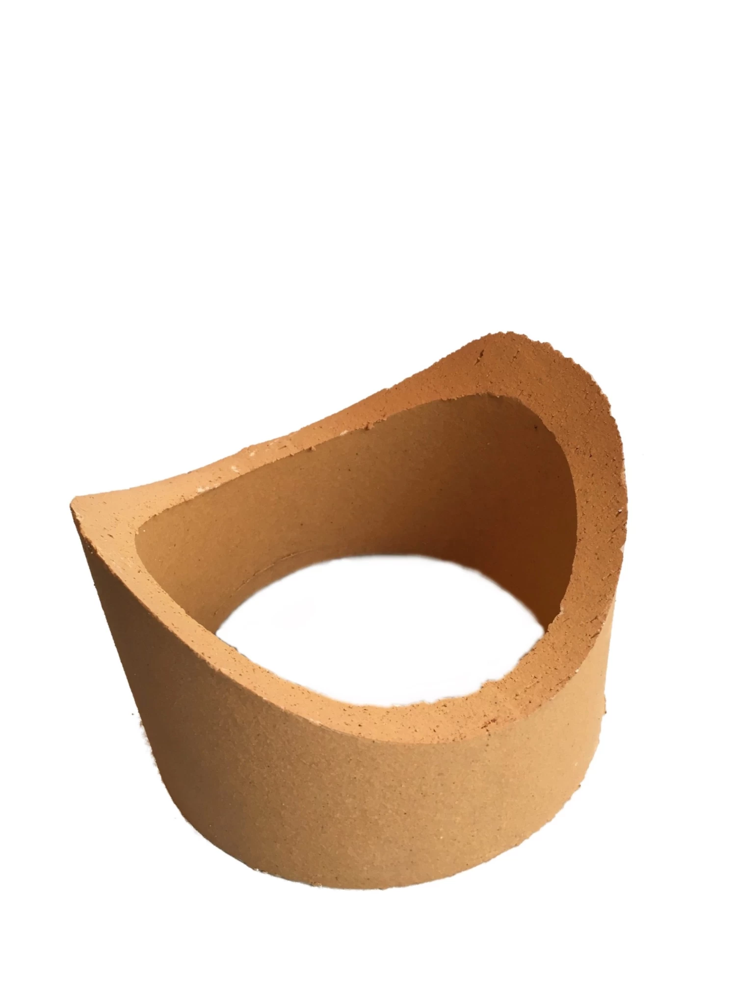 Schamotterohr-Sattelstück des deutschen Qualitätsproduzenten Wolfshöher TONWERKE als keramischer Schornsteinanschluss für den Einsatz im Kamin- und Ofenbau zum nachträglichen Einbau an bestehende 3-schalige Hausschornsteine.