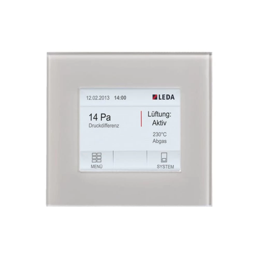 Die intelligente Prozesssteuerung liefert per Grafik-Display mit Touchscreen-Oberfläche und dezentem Glasrahmen ausführliche Informationen zum jeweils aktuellen Betriebsstatus und überwacht gleichzeitig die Funktions- und Betriebssicherheit beider Systeme. Im Störfall wird LUC sofort aktiv und schaltet die lufttechnische Anlage automatisch ab, um mögliche Gefahren abzuwenden. So bleibt ein gemütlicher Kaminabend stets das, was er sein soll: Mit Sicherheit ein Vergnügen. LEDA Unterdruck-Controller – weil man gut behütet einen Kaminofen noch intensiver genießen kann. LUC Display Modernes Grafik-Display mit Touchscreen-Oberfläche und dezentem Glasrahmen Einfache, übersichtliche Bedienoberfläche Selbsterklärende Menüführung über Icons Hintergrundfarbe: wahlweise weiss oder schwarz Energiesparmodus Abmessungen: 112 x 94 mm
